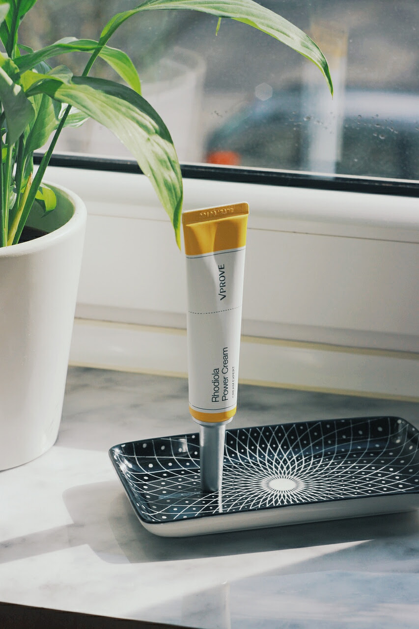 This product has an intensive smell, a little bit weird but nice, it smells like some herbs but not in 100%, I've never smelled Rhodiola so I won't tell you if it's this smell or not. The texture is good, normal white cream - easy to spread, it hides redness a little bit.